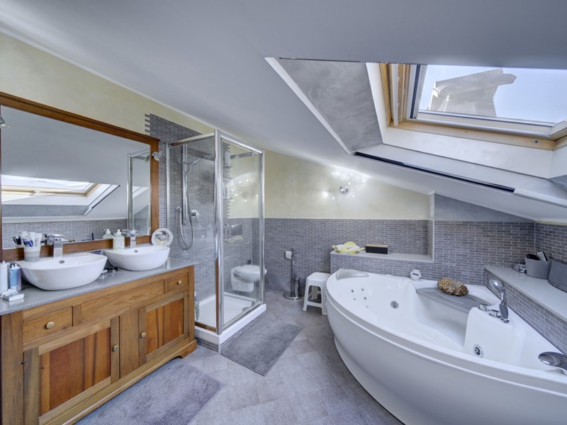 I bagni offrono comfort esclusivi, con doccia sauna, vasca idromassaggio e molto altro.