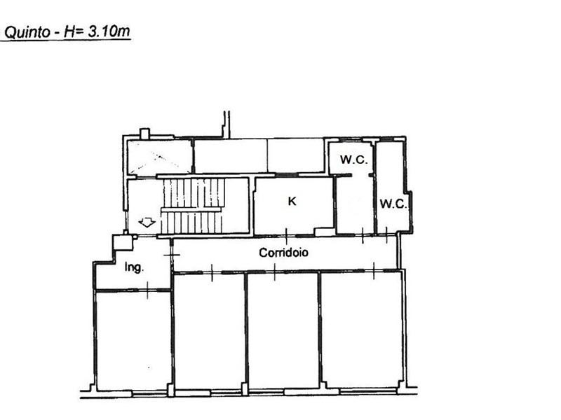 L'appartamento è a piano alto, è luminoso ed arioso, è di mq. 125 ca. ben distribuiti. L'ingresso ampio ci introduce nell'immobile, attualmente utilizzato come ufficio, dove si susseguono 4 camere, tutte comode, molto luminose, di cui 4 affacciate con una finestra balcone su Via Quintino Sella ed 1 sul balcone interno. Anche l'ex cucina è abitabile ed è affacciata sul balcone interno. I 2 bagni, entrambi con finestra, ed il ripostiglio garantiscono ulteriore comodità all'appartamento. Il potenziale della casa appare dal piano alto, dalla dimensione comoda (mq. 125 ca.), dai numerosi affacci, dalla signorilità dello stabile e dalla posizione strategica, molto centrale e vicina alle vie d'ingresso e d'uscita del centro città.