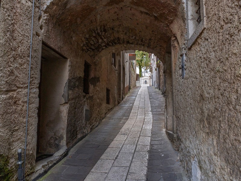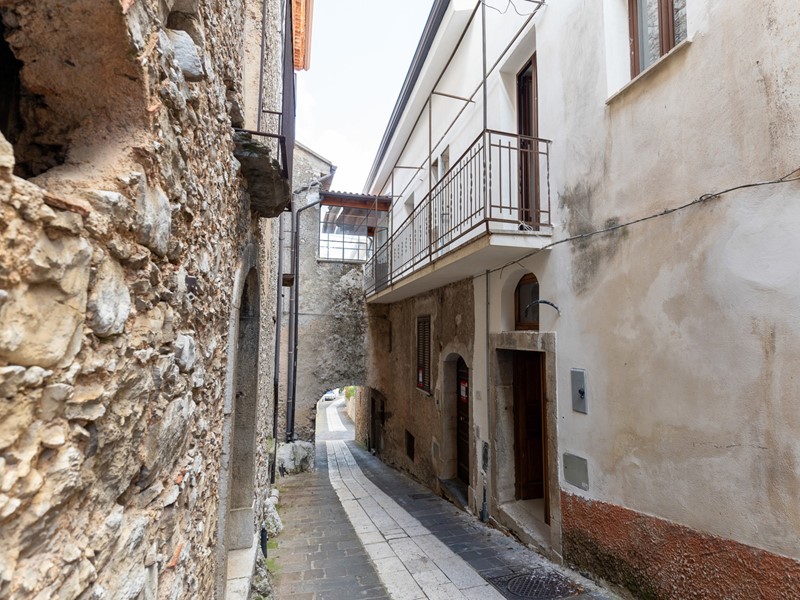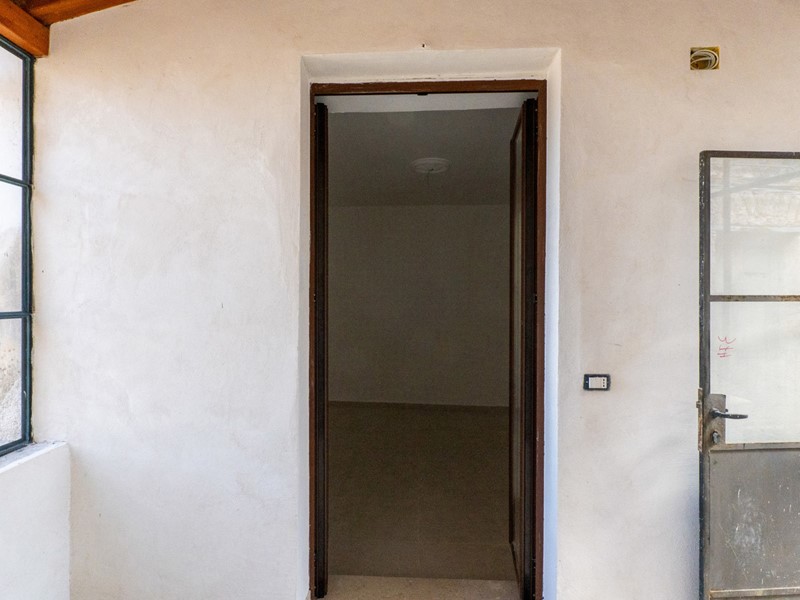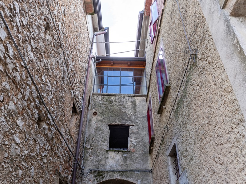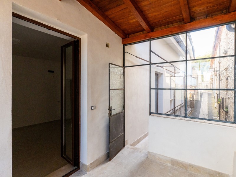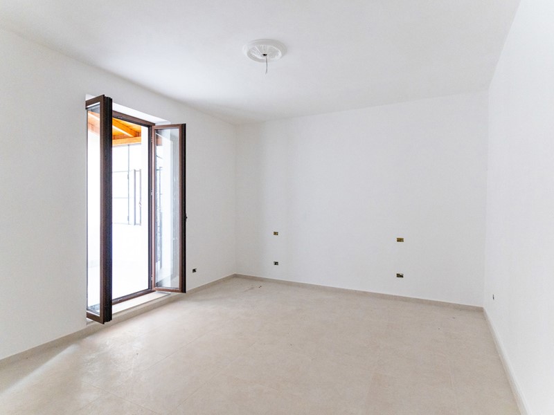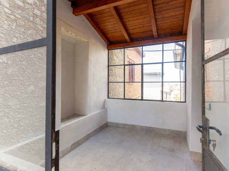 L'ingresso, accogliente e luminoso, ti accompagna verso il piano superiore dove si apre la zona living: un openspace con camino, perfetto per le serate d'inverno o per una colazione davanti alla lunga balconata che si affaccia sui tetti del borgo.