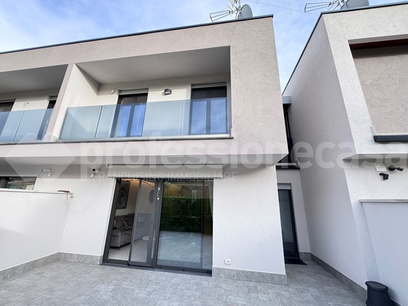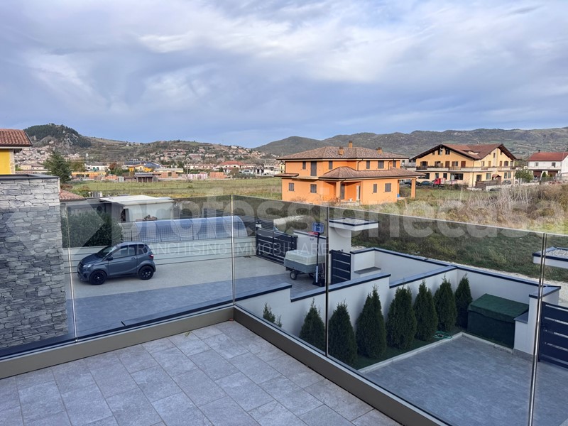 In vendita a Castel di Sangro (AQ), in una zona signorile e semicentrale, proponiamo una splendida villa a schiera di recente costruzione con finiture di pregio. La proprietà si sviluppa su due livelli per complessivi 164 mq di superficie, con un ampio e luminoso living con predisposizione per camino, cucina a vista, tre camere da letto, tre bagni, lavanderia e dispensa/cantina.