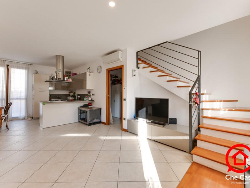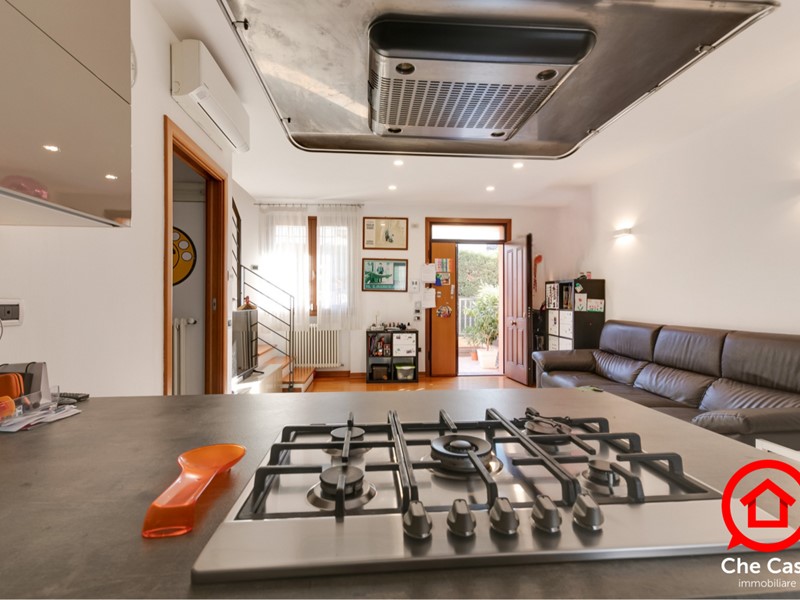 Al piano terra si sviluppa un luminoso ambiente soggiorno/pranzo openspace con angolo cottura, oltre a un disimpegno e un bagno di servizio.