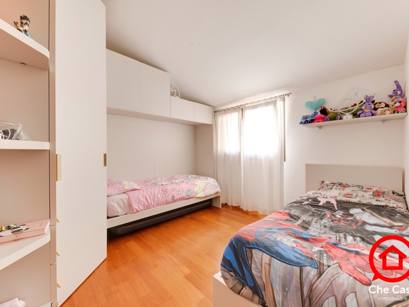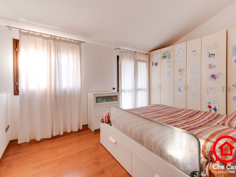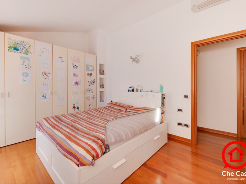Il piano primo è dedicato alla zona notte, con due camere da letto, una matrimoniale e una singola entrambe rifinite con pavimentazione in parquet. Completano il livello un secondo Bagno e un Balcone collegato direttamente alla camera matrimoniale.