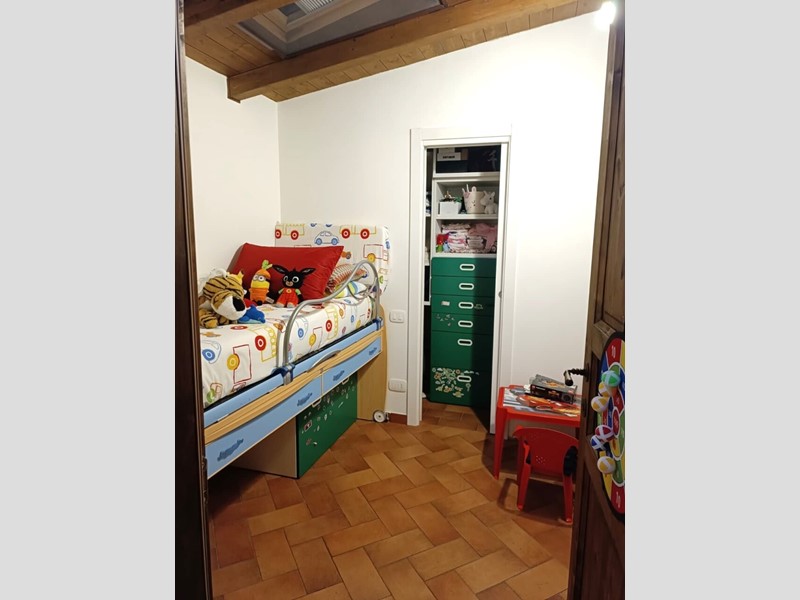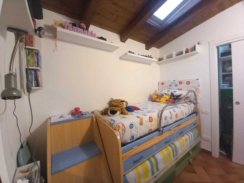 La camera matrimoniale è ampia, mentre la cameretta, dotata di cabina armadio, è ideale come stanza per bambini o studio.
