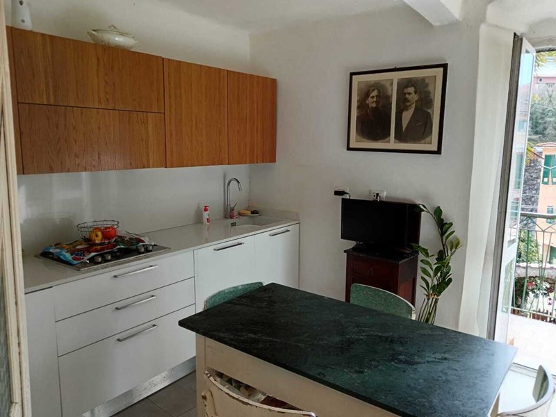 Appartamento a Vezzano Ligure posto al piano primo di casa di sole due unità; al piano terra nell'atrio condominiale si trova una cantina di proprietà e dalla scala si accede alla casa. L'appartamento è disposto su due piani, al piano primo si trova la cucina con balcone e il soggiorno. Scala che porta al piano superiore dove ci sono due camere da letto e un bagno. Dalla camera più piccola si può accedere al lastrico solare di mq. 25 di proprietà condominiale.(ma con accesso solo da questa stanza).