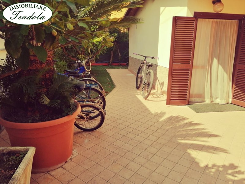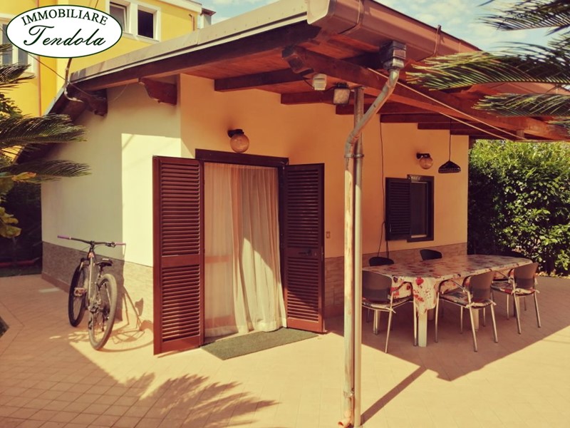 FIUMARETTA DI AMEGLIA a poca distanza dal mare,appartamento semindipendente posto al piano rialzato in fabbricato bifamiliare,composto da ingresso indipendente da terrazzino loggiato, disimpegno,soggiorno,grande cucina con zona pranzo e angolo cottura,ripostiglio,due camere,bagno.Dalla zona pranzo si accede ad una corte retrostante quasi totalmente pavimentata, con piccolo giardino,sulla quale insiste una dependance di 35 mq ca ,composta da soggiorno con zona cottura,camera,bagno,oltre a due posti auto .\nOTTIMA SOLUZIONE COME CASA RESIDENZIALE O CASA VACANZA PER FAMIGLIE NUMEROSE.