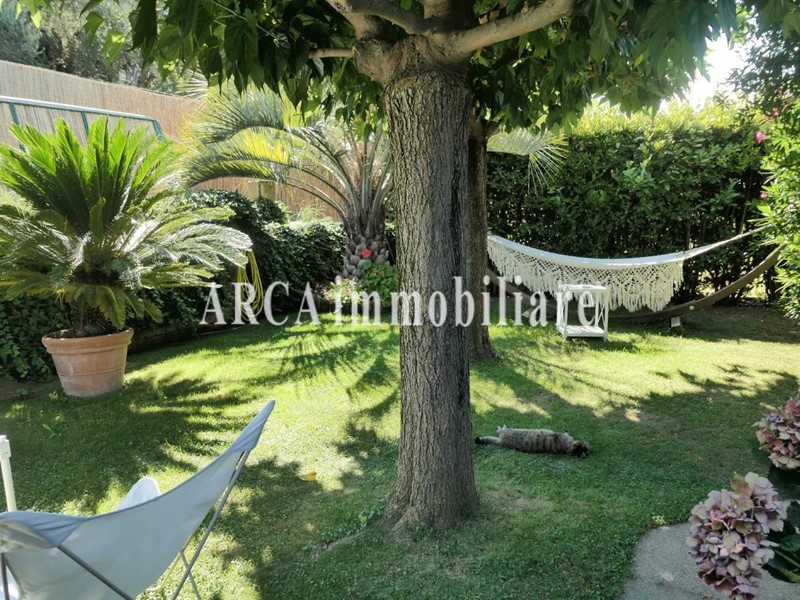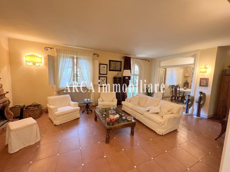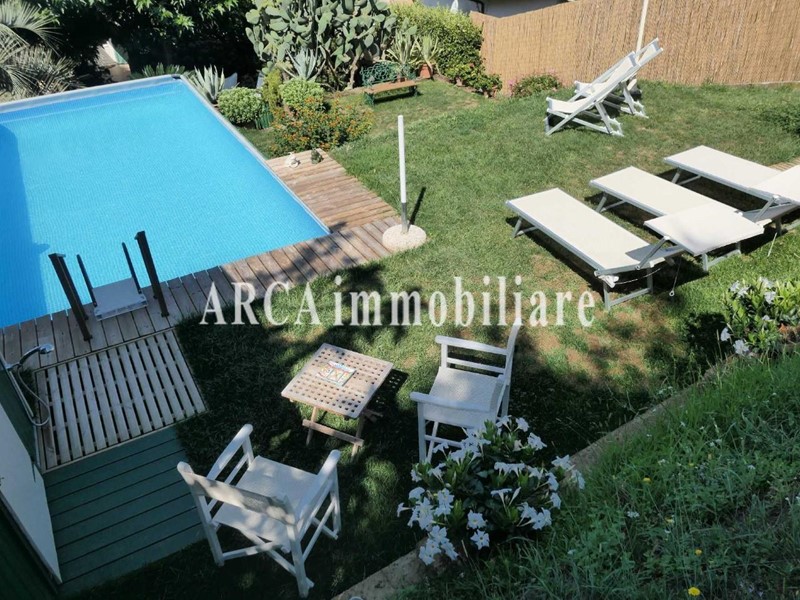 Pietrasanta (a 7'da Forte dei Marmi), villa singola in ottimo stato di manutenzione, ai piedi della collina disposta su due piani: soggiorno con pergolato, sala pranzo, cucina, disimpegno, servizio, studio o camera e portico al piano terra e zona notte al piano 1° composta da sala, camera con studio e bagno privato, camera padronale con balcone, grande vano armadi e bagno, disimpegno e grande terrazza. Cantina-lavanderia e posti auto. Piscina (fuori terra). Terreno a balze di ca. 2.000 mq