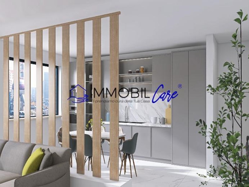 L’ingresso si apre su una grande zona giorno estremamente luminosa, grazie alla doppia finestra affacciata sul contesto urbano. La cucina a vista dialoga con il soggiorno attraverso eleganti pannelli in legno di design, mentre l’illuminazione LED, con velette e faretti , crea atmosfere moderne e ricercate.