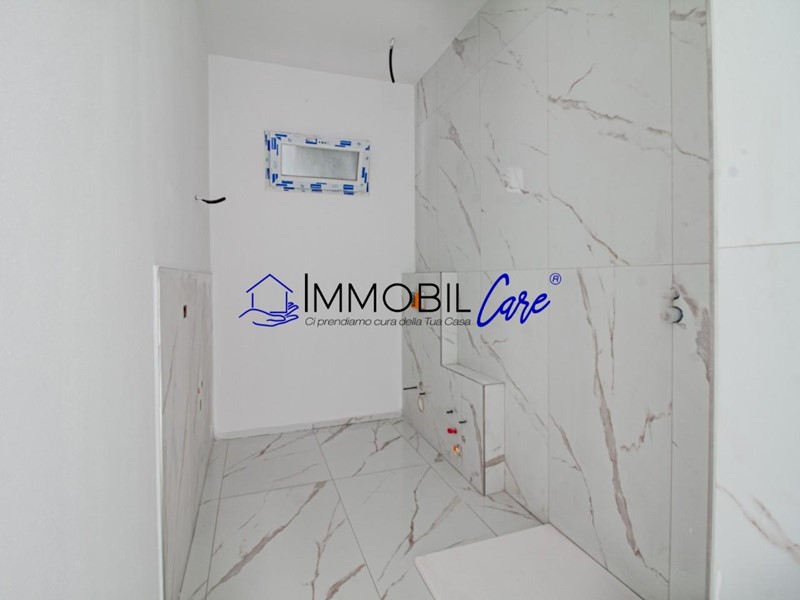Una porta filo muro ultramoderna introduce al bagno finestrato, dotato di doccia e antibagno con locale lavanderia attrezzato, progettato con estrattore d’aria ad alta pressione per una ventilazione controllata che garantisce asciugatura rapida dei vestiti ed elimina completamente odori e umidità, anche in presenza di lavatrice e asciugatrice.