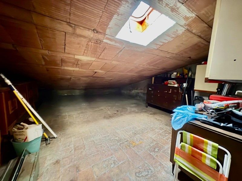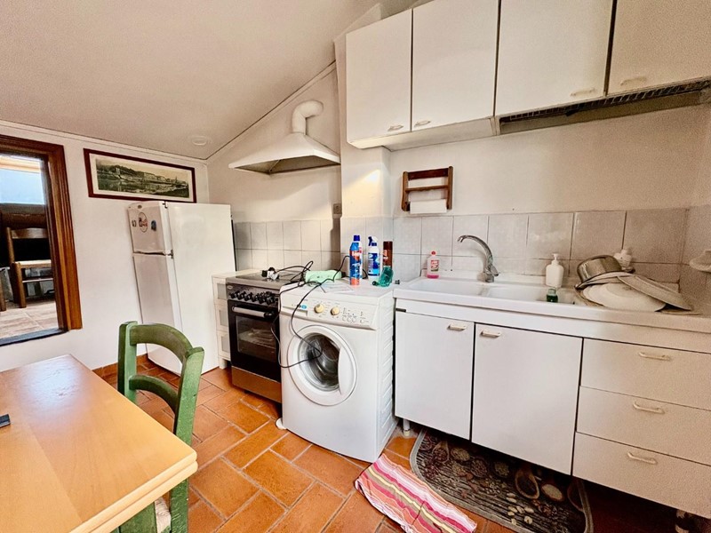 L'immobile è sapientemente distribuito in due parti, separate dal ballatoio condominiale. Da un lato troviamo una comoda e luminosa cucina/soggiorno, caratterizzata da un caldo pavimento in cotto e da due ampie finestre che garantiscono un’ottima illuminazione naturale. Questa zona è completata da due soffitte, una delle quali risulta parzialmente abitabile, entrambe dotate di lucernario, offrendo così un ambiente versatile per riporre oggetti o creare un angolo studio.