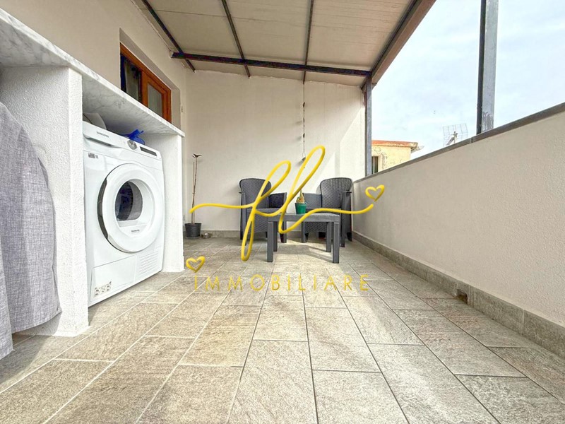 All’ingresso ci accoglie una sala con accesso alla terrazza pranzabile dove è stata ricavata la lavanderia.
