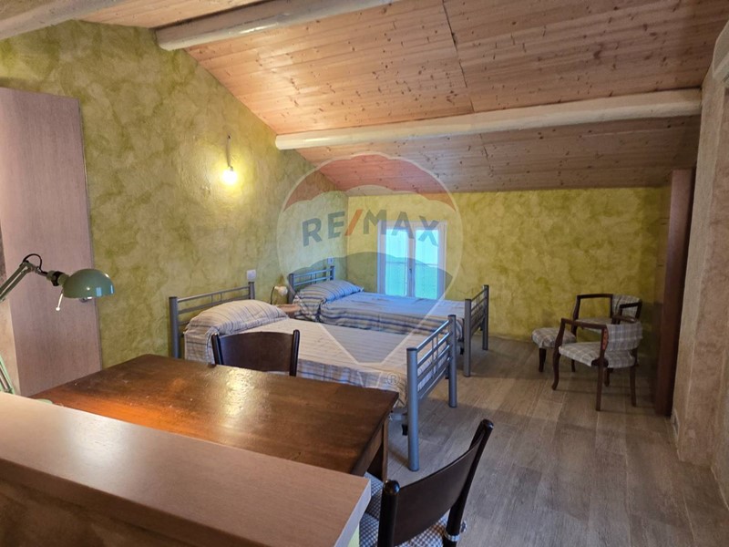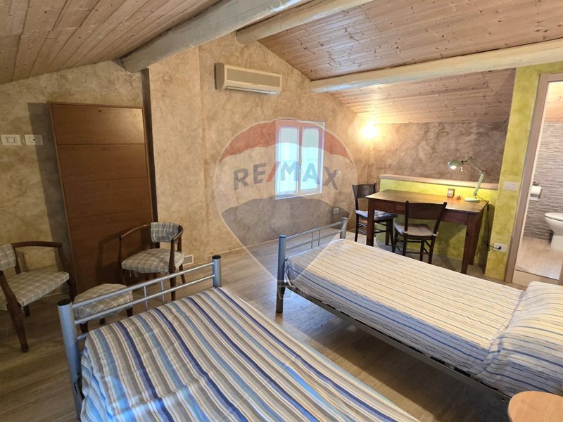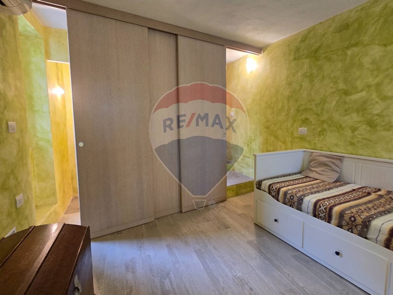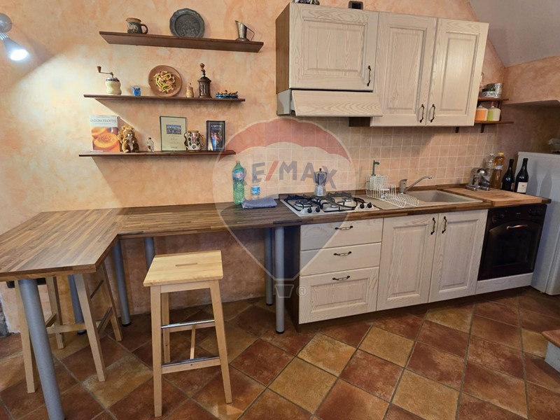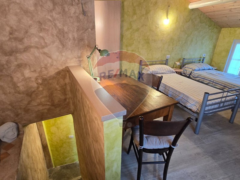 L'arredamento è funzionale, raffinato ed elegante, con un tocco di antico, l'edificio presenta al piano terra, dopo l'ingresso con porta blindata, una cucina a vista che si affaccia su un luminoso salone con camino in pietra e doppi divani; il bagno principale insiste su questo piano, mentre la zona notte con le camere ed un ulteriore bagno, si trova ai livelli superiori.