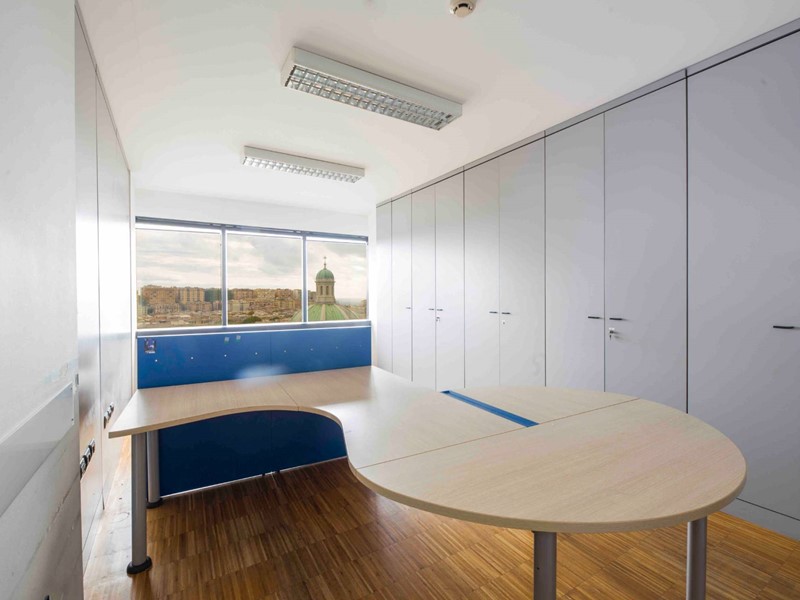 Il piano attualmente utilizzato come ufficio, è distribuito in 14 locali operativi, un ampio ufficio direzionale, una sala riunioni, servizi igienici e locali accessori.