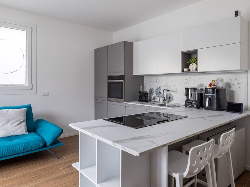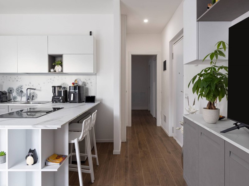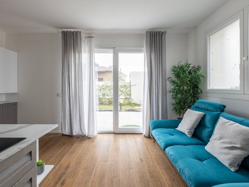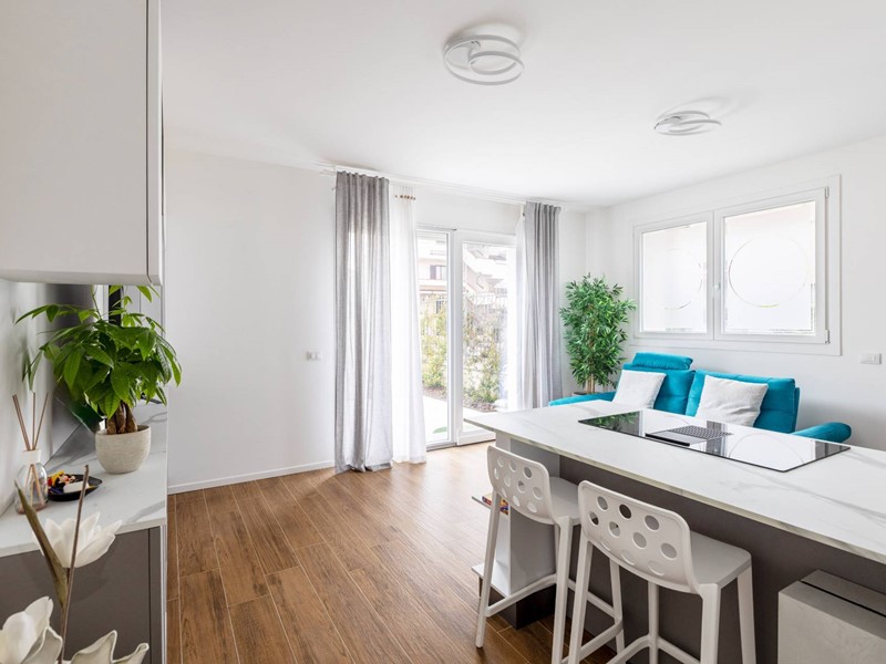 In palazzina di recente costruzione (2023), realizzata con criteri ad alta efficienza energetica e classificazione A4, proponiamo in esclusiva un appartamento trilocale in condizioni pari al nuovo. Lingresso si apre su un soggiorno con cucina a vista, caratterizzato da unampia portafinestra scorrevole in PVC con doppio vetro, che garantisce elevate prestazioni termo-acustiche e consente laccesso diretto al giardino di 42 mq, perfettamente fruibile e ad uso esclusivo.
