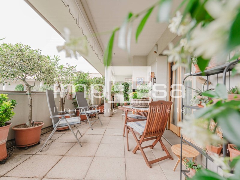 L'appartamento esposto su tre, dall' ingresso si accede al soggiorno pranzo con accesso alla terrazza coperta di 50 mq. esposta a sud est , cucina, e camera ad uso studio. Il corridoio ci conduce alla zona notte con 2 camere e due servizi.