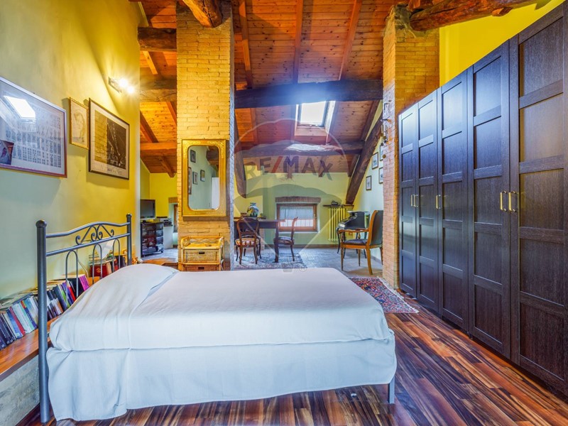 Ai piani superiori, tre camere da letto, due bagni, e una mansarda con altezze importanti e secondo camino offrono spazi di intimità e libertà.