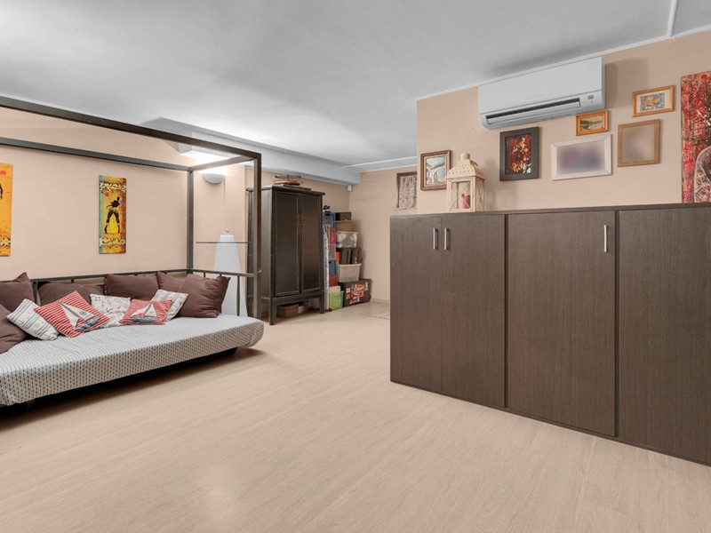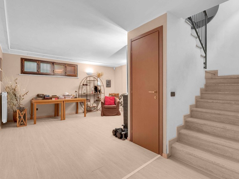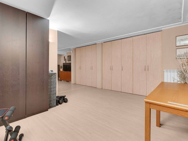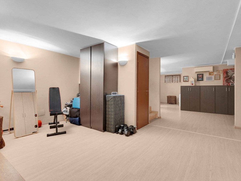 spaziosa taverna finestrata, estremamente versatile, già predisposta con allacci per una seconda cucina, dotata inoltre di lavanderia e box doccia
