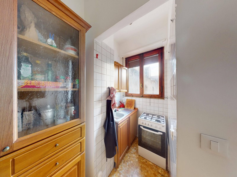 L'immobile, in buone condizioni interne, è composto da ingresso su disimpegno, tinello con cucinino, due camere da letto, comodo ripostiglio e bagno con finestra.