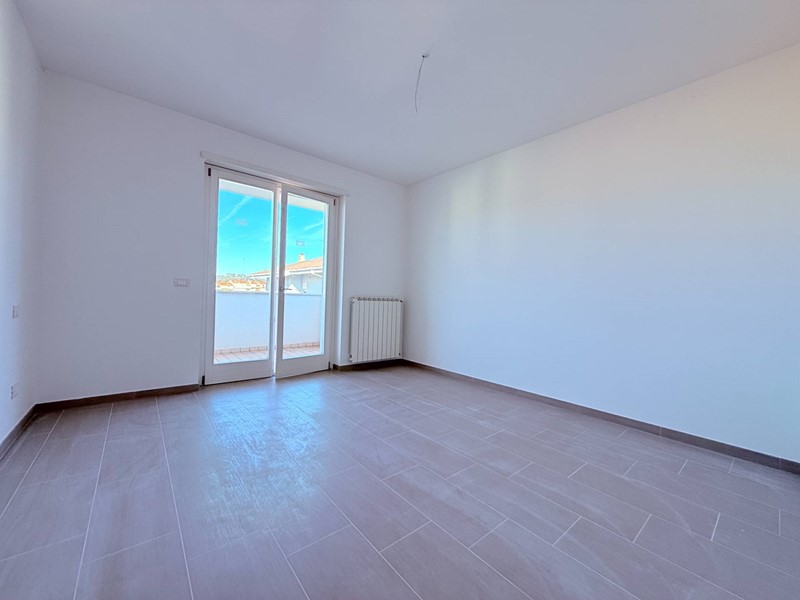 Lingresso conduce in un ampio soggiorno living, luminosissimo grazie alle grandi aperture e impreziosito da una perfetta integrazione tra zona relax e cucina a vista, con accesso diretto al balcone terrazzato: uno spazio esterno vivibile, ideale per colazioni allaperto, momenti in famiglia o semplicemente per godersi il panorama.
