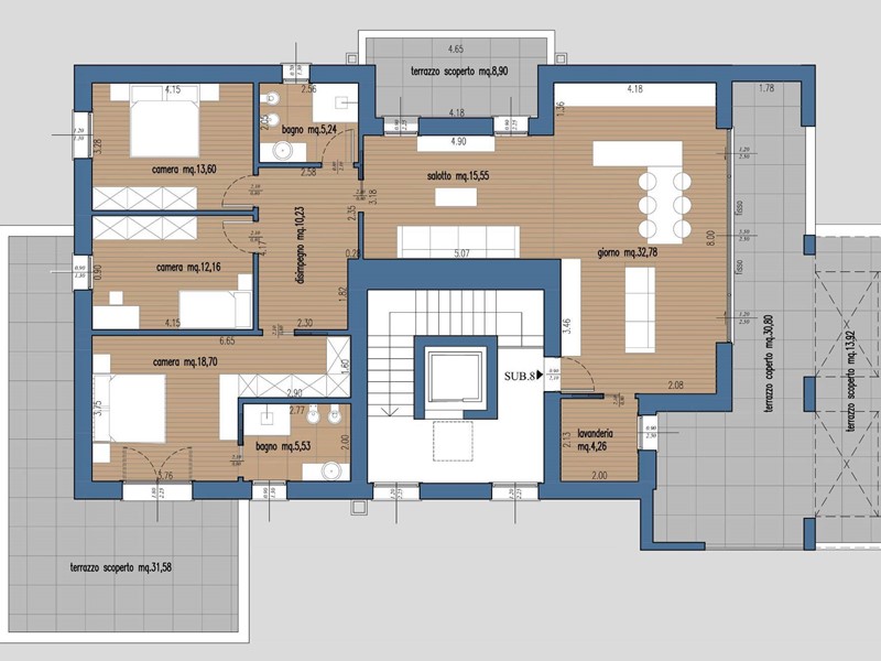 Un vero ultimo piano esclusivo, lunico appartamento su tutto il livello, pensato per chi cerca privacy, luminosità e uno stile di vita superiore.