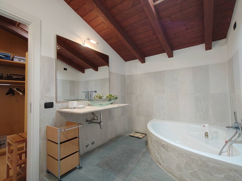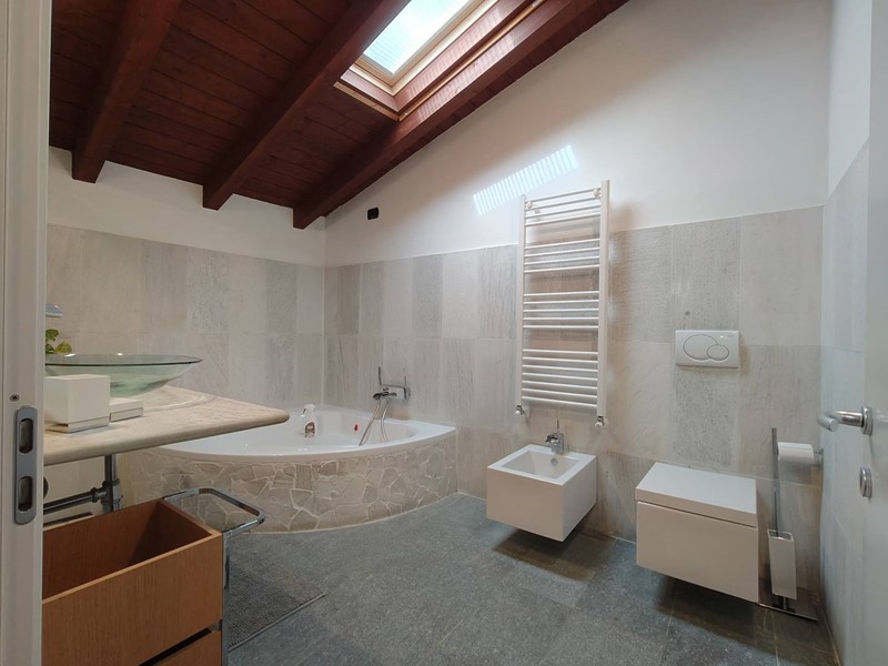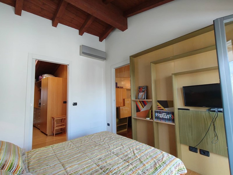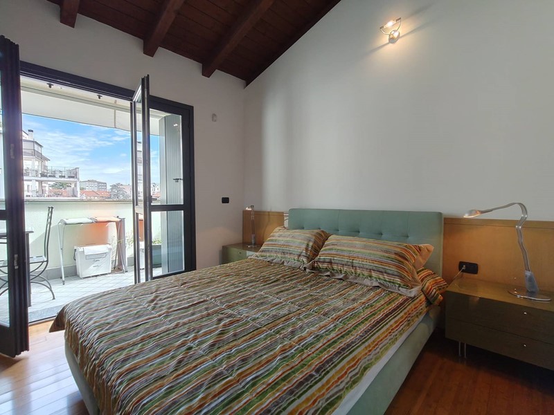 Gallarate. Zona Centro. In condominio recentemente edificato, al 4° ed ultimo piano con ascensore, proponiamo TRILOCALE mansardato con travi a vista, completamente arredato, composto da ingresso, soggiorno con cucina a vista, camera matrimoniale con cabina armadio e bagno privato con vasca angolare, disimpegno, seconda camera da letto e secondo bagno con doccia. Oltre a balcone ed ampio box auto con basculante automatizzata. L'immobile dispone di allarme, videocitofono, aria condizionata, tende da sole e riscaldamento a pavimento centralizzato con contabilizzazione autonoma. APE Classe energetica C - EPgl,nren 139.78 kwh/mqa, EPgl,ren 24.92 kwh/mqa.