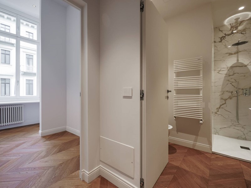 L'immobile è situato al secondo piano nobile di uno stabile del 1880 protetto da servizio di portineria, totalmente restaurato nelle parti comuni tre anni fa.
