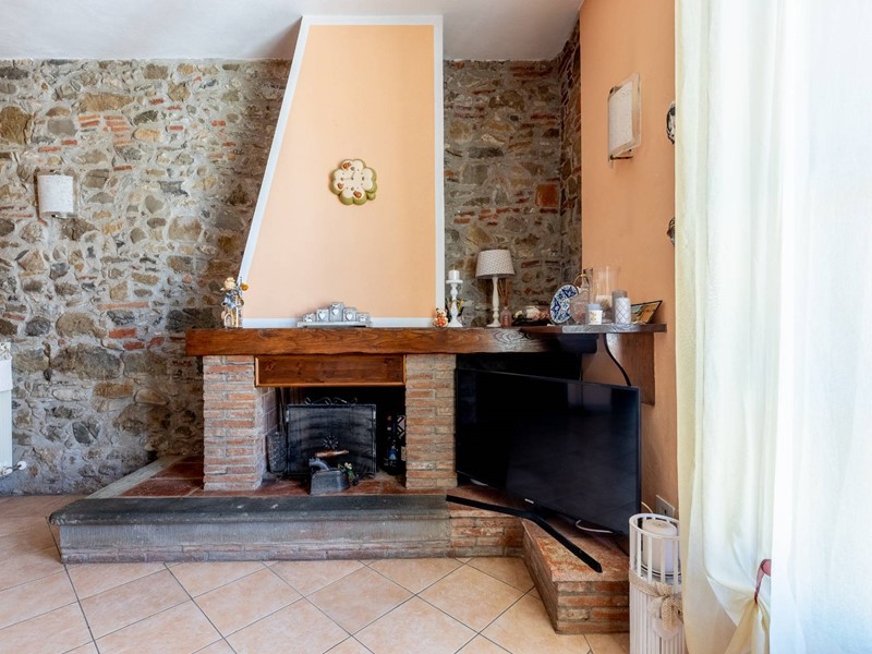 la zona notte comprende 3 camere da letto e un bagno, mentre la zona giorno è composta da una cucina abitabile e un ampio soggiorno con caminetto in pietra a vista.
