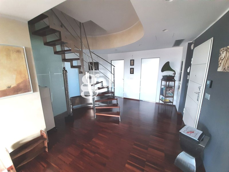 COMPOSIZIONE INTERNA Piano 10°: ingresso living su salone triplo, cucina abitabile, camera, lavanderia, servizi, terrazzo verandato e balcone. Al piano superiore 11° mansardato: tre camere, disimpegno (zona relax), ampia cabina armadio (ripostiglio), locale tecnico, doppi servizi, due cabine armadio.