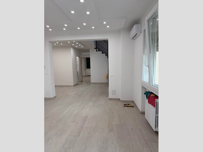 Vendesi appartamento al 1°e ultimo piano di piccolo condominio, composto da ingresso-soggiorno, cucina a vista, servizio cieco e camera matrimoniale, tramite una bellissima scala di legno si accede al piano superiore Dove si trova l'altra camera matrimoniale ed un ripostiglio predisposto per servizio, ampio sottotetto di tredici metri quadri da usare per riporre molteplici cose. Accessiorato di aria condizionata, e posto auto di proprietà, termosingolo. Vista la sua completa e raffinata ristrutturazione l'appartamento è pronto fin da subito per essere abitato e con poche spese di condominio. rif 33501