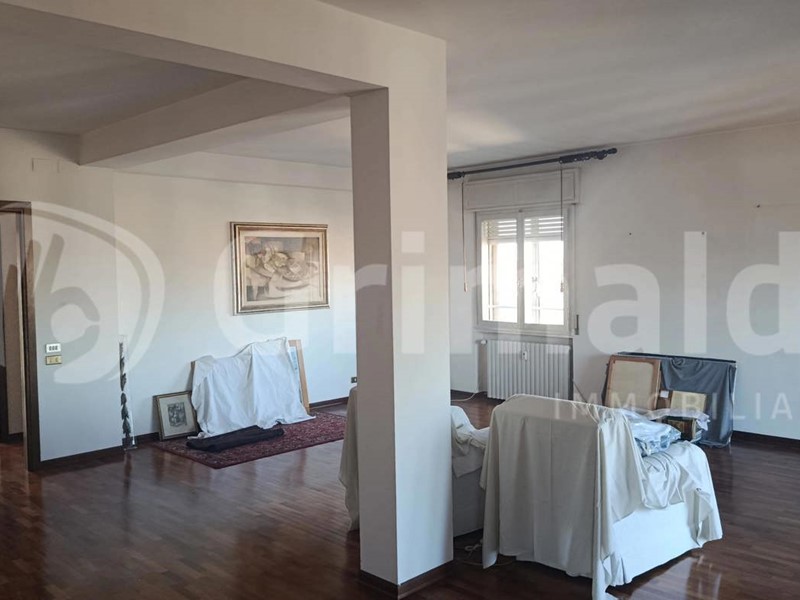 SS. TRINITA'. A ridosso del piazzale Buonarroti, in zona ben servita, appartamento di ampia metratura con splendida vista panoramica sui tetti della città. Doppio ingresso, meraviglioso salone di circa mq.60, sala da pranzo molto grande, cucina separata, 2 terrazzi, 3 camere matrimoniali, doppi servizi entrambi finestrati e due comode verande. Piano terra due garage. La presenza del doppio ingresso permette la realizzazione anche di due unità separate. Finiture da rivedere. ape 118,36 cl. F - ape 156,27 cl. F