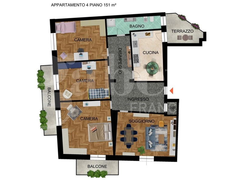 Ogni spazio è studiato per sfruttare al massimo i 151 m², garantendo comfort e vivibilità.