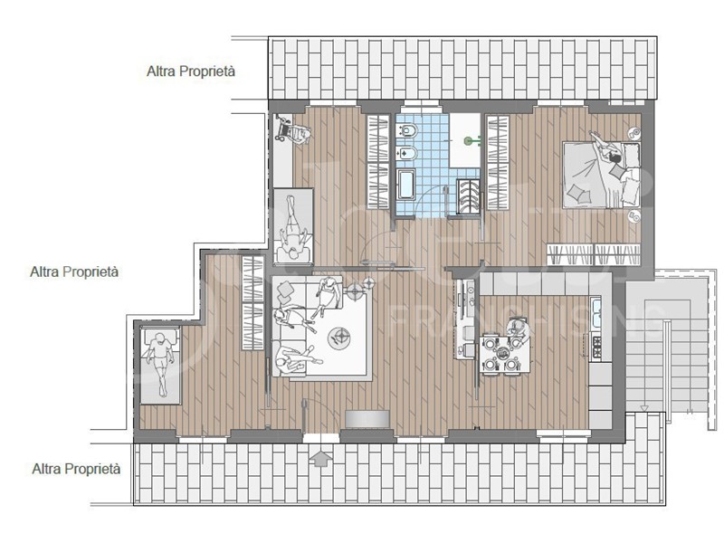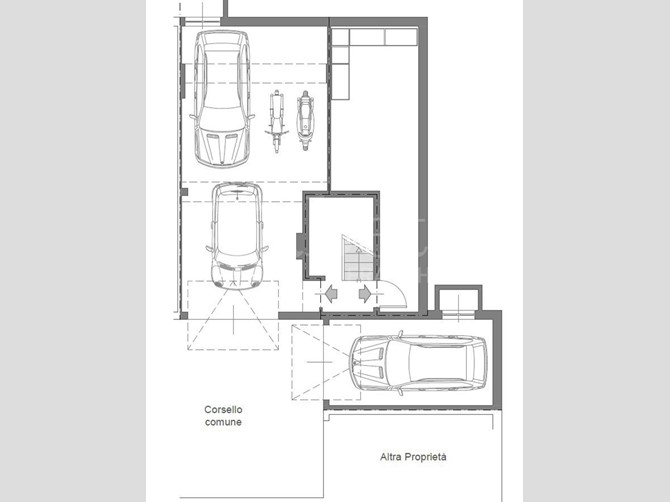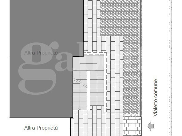 L'accesso all'unità abitativa è indipendente, posto su un piccolo vialetto condominiale, che conduce alla scala esterna esclusiva e di collegamento tra i piani.