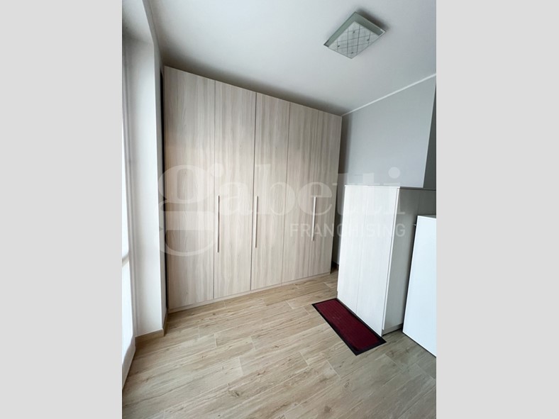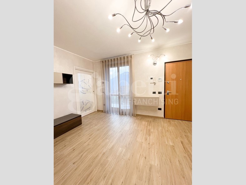 L'ingresso all'appartamento si apre su un ampio e luminoso soggiorno, proseguendo nella zona giorno si trova una cucina abitabile e una camera da letto singola, perfetta per essere utilizzata anche come studio.