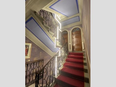 Pavimentazioni in marmo, inclusi motivi a scacchiera tipici della zona, e parquet con intarsi artistici.Ultimo piano con travi in legno tinte chiare.Ogni suite/appartamento predisposto per l’installazione di una cucina (idoneo anche per attività ricettiva).Disponibile anche una dependance totalmente ristrutturata con una superficie di circa 355 m² che comprende un salone comune, garage e due appartamenti indipendenti idonei per ospiti e/o custode.Superficie totale immobili mq.1.500. Richiesta €.2.900.000