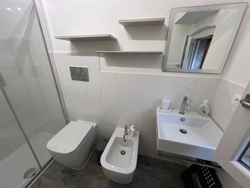 Al piano terra troviamo un ampio soggiorno/pranzo con cucina ed accesso alla terrazzina da cui si si può godere una splendida vista sul mare e sulle colline, un comodo locale ripostiglio e bagno con doccia finestrato; attraverso una ampia scala in pietra a vista si raggiunge il piano primo dove si trova il reparto notte composto da due camere matrimoniali di una con bagno privato e l' altra con cabina armadio, da qui una scala conduce al locale sottotetto.
