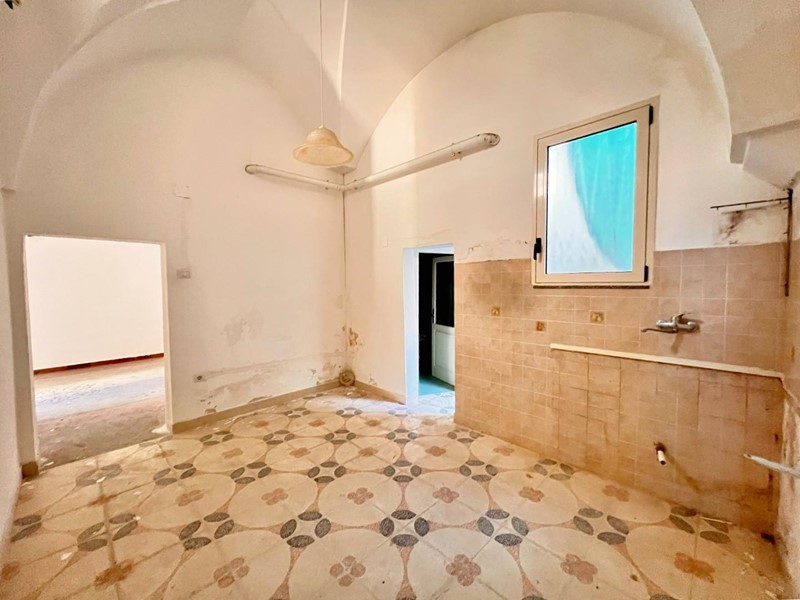 Il piano terra accoglie la zona giorno, composta da un ingresso-tinello con volta caratteristica, una cucina abitabile separata, una camera da letto, un bagno finestrato e ulteriori locali utili come ripostiglio e deposito pluriuso.