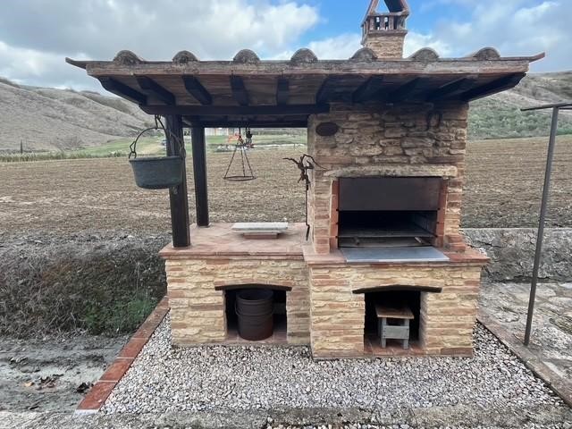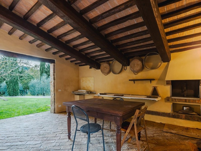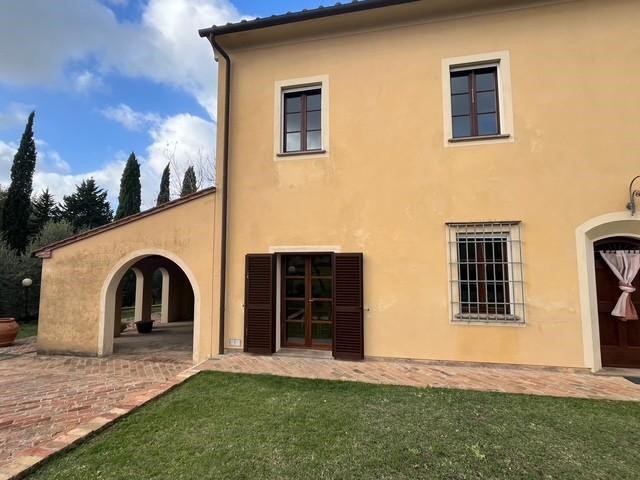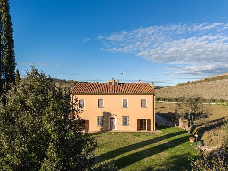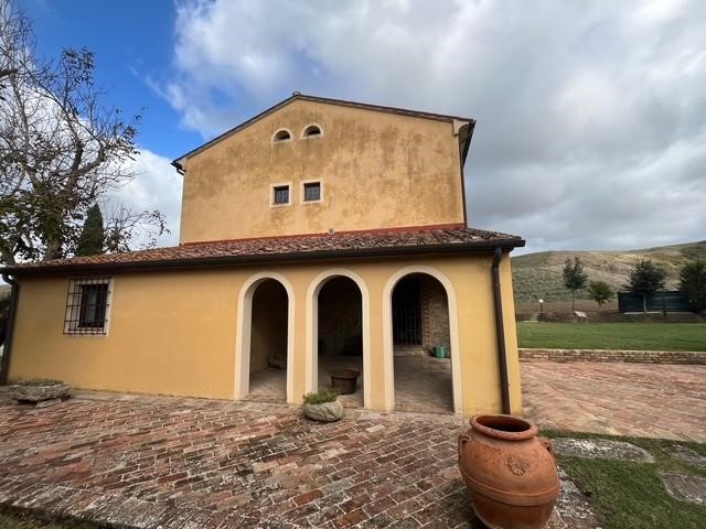 Elegante colonica totalmente ristrutturata finemente di recente seguendo il classico stile toscano.Dalla principale strada di comunicazione che congiunge la città di Pisa alle rinomate terme di Casciana ci accoglie un imponente cancello che delimita la proprietà,;varcato esso la privacy è assicurata. Un viale di cipressi e un piccolo torrente ci accolgono fino alla casa principale,dove da cornice ci sono le meravigliose colline toscanedelle quali 12 ettari sono di propietà della colonica. Il silenzio,l'oliveto e il grande giardino pianeggiante ci invitano a parcheggiare l'auto e godersi tutta la natura circostante- Enrtiamo in casa dove un'elegantissimo salone di generose dimensioni ci aspetta insieme all'imponente camino in muratura per il periodo invernale,mentre dalla cucina è possibile accedere direttamente al bellissimo resede pavimentato e coperto per poter mangiare nelle giornate piu calde- Sempre a piano terra adiacente al giardino altro locale perfetto per mangiare corredato da barbecue e forno in muratura ideale per fare le pizze,bagno,lavanderia e altre 2 grandi stanze pluriuso corredano il piano terra. Salendo dalla doppia scala interna troviamo un altro grande salone con caminetto e cucina in muratura,3 camere di generose dimensioni(possibilità di realizzare la quarta camera) e altri 2 bagni completano la proprietà.