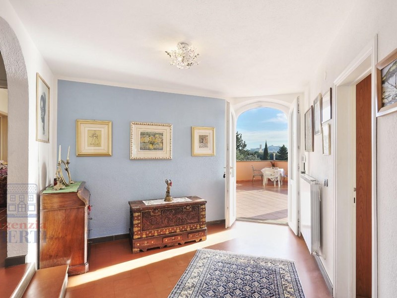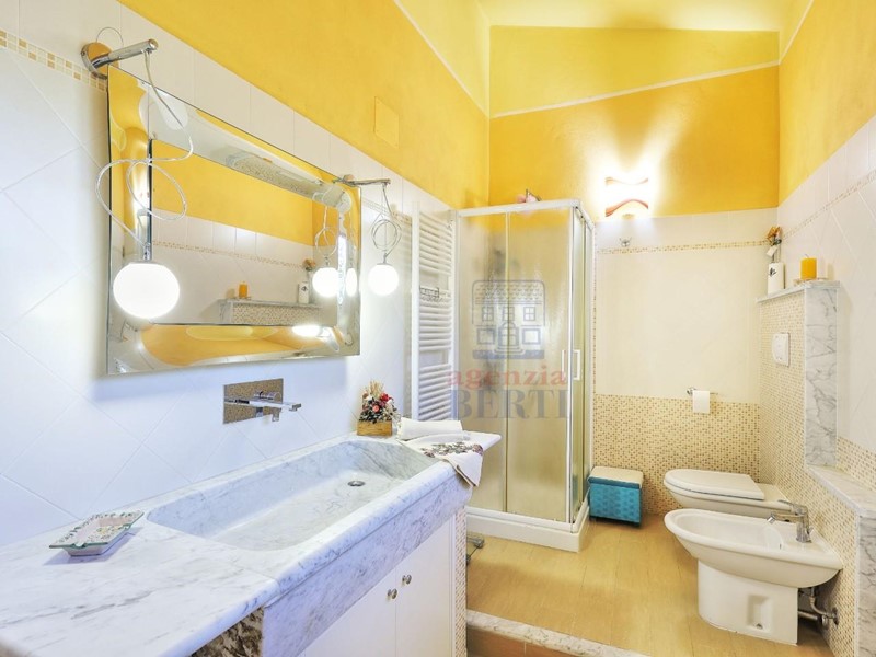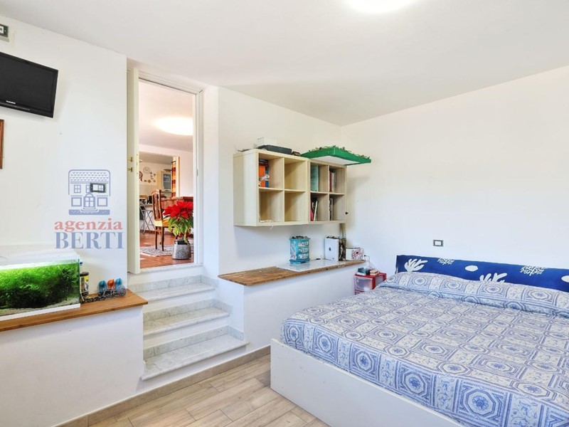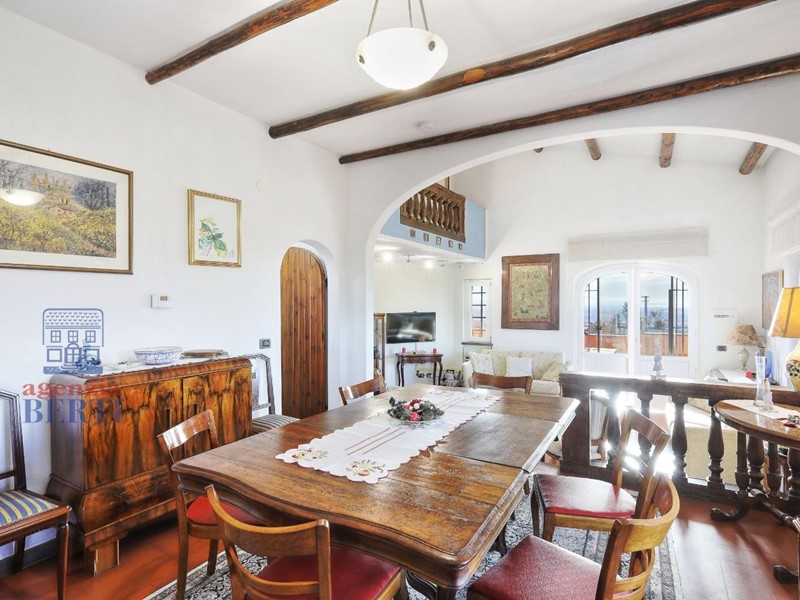 Il piano superiore è accessibile sia dall'interno che da una scala esterna che si affaccia sul giardino. Qui troverai una splendida veranda con vetrate scorrevoli, perfetta per goderti il panorama in ogni stagione. Da qui, potrai accedere al grande terrazzo, ideale per prendere il sole o organizzare piacevoli pranzi all'aperto. Gli interni di questo piano sono così distribuiti: un accogliente salotto, una sala da pranzo, una cucina abitabile con accesso al giardino, due bagni (di cui uno en suite nella camera matrimoniale) e una seconda camera da letto. Un soppalco, raggiungibile dal disimpegno, ospita una bella stanza finestrata con camino, attualmente adibita a studio.