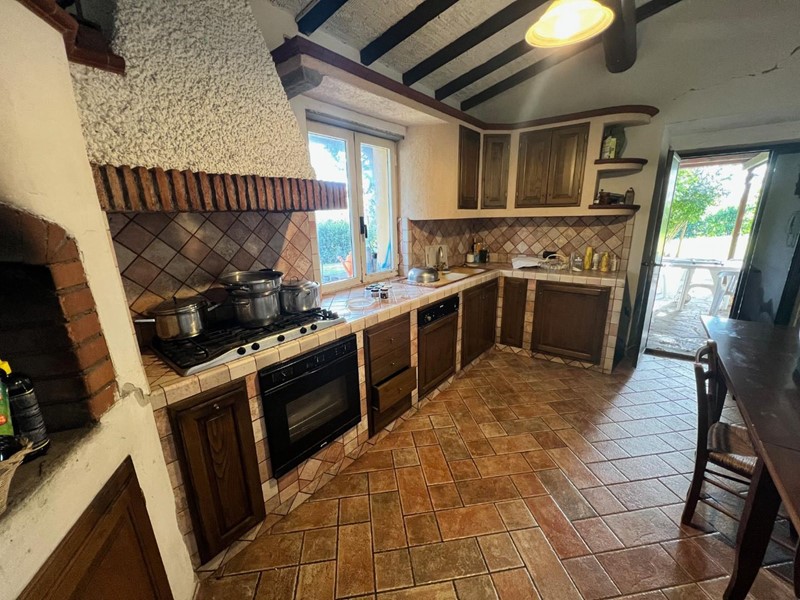 Completano la proprietà ulteriori due locali in aderenza alla abitazione, di cui uno adibito a CANTINA con ripostiglio lavanderia e tini in cemento armato per produzione di vino e l’altro a ripostiglio con cucina rustica per cene da servire all’aperto collegata ad ampio loggiato.