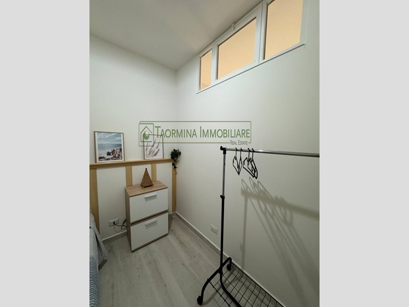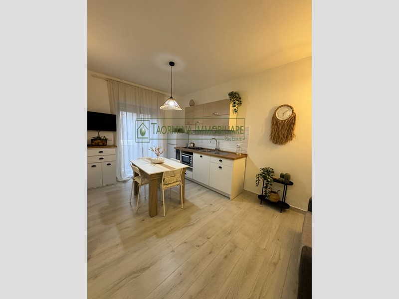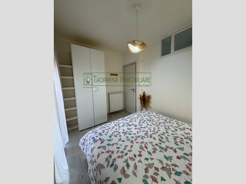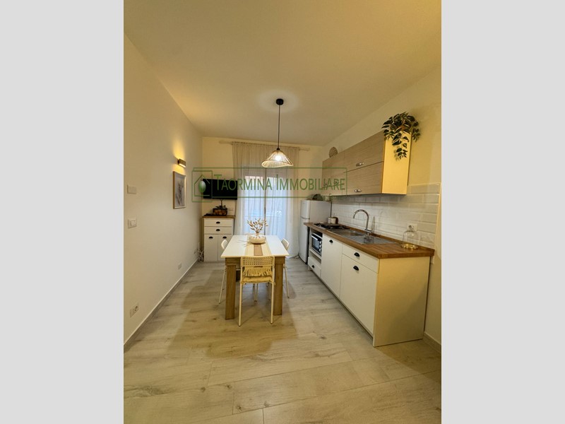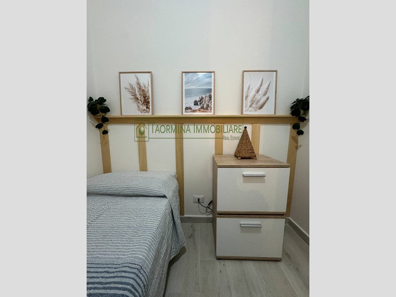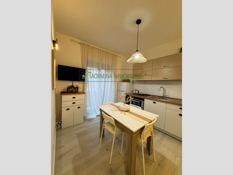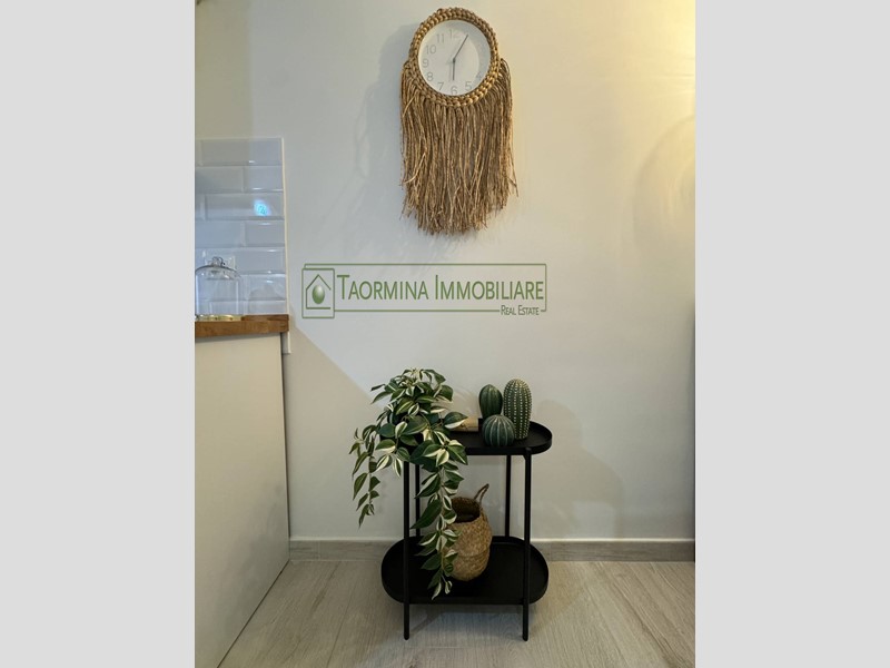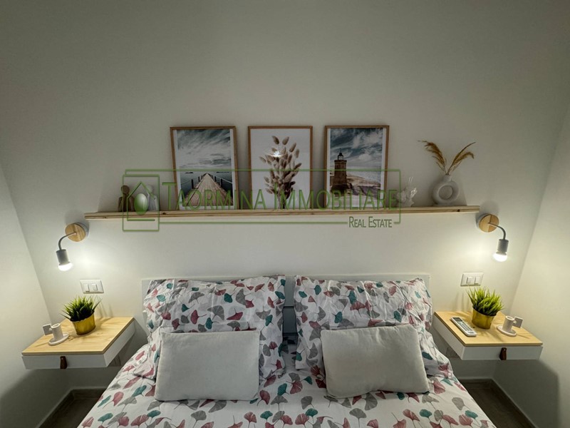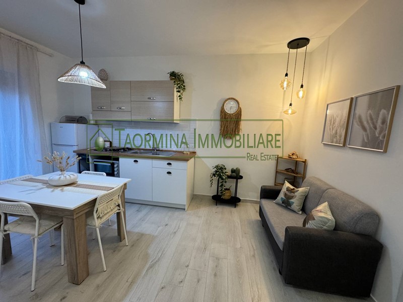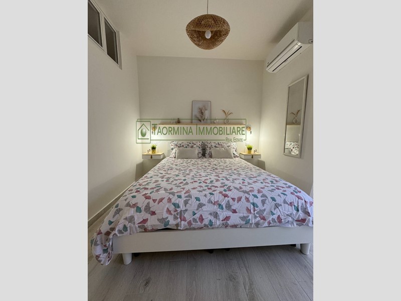 Incantevole appartamento a pochi passi dalla spiaggia di Taormina in località Mazzeo, primo piano interamente ristrutturato, climatizzato, Ingresso, soggiorno con ampio angolo cottura, camera singola, camera matrimoniale, servizio Wc e balcone.