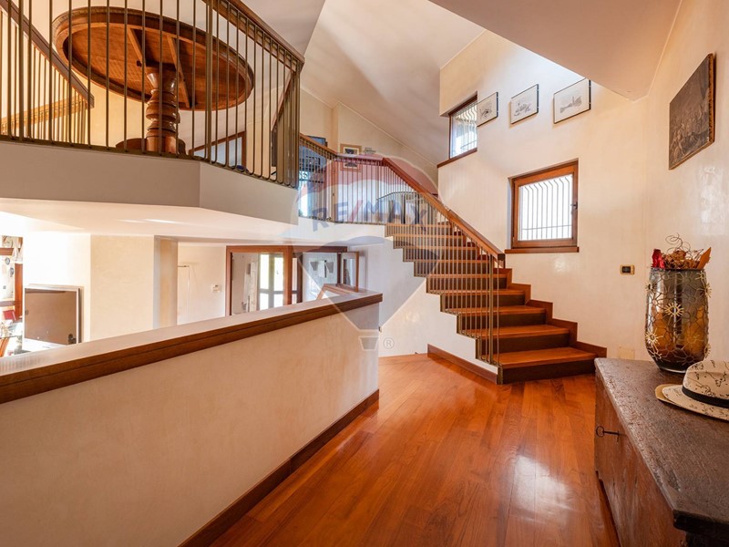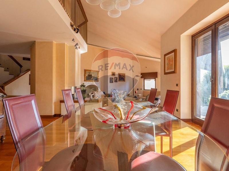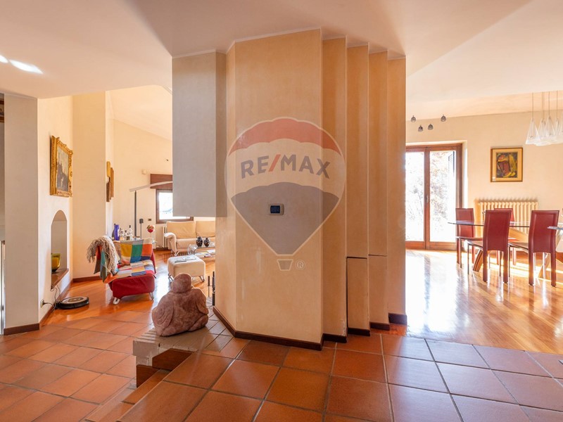 Attraverso il cancello carraio automatizzato si accede, mediante vialetto lastricato, allingresso della villa, dove troviamo due ampi box (comunicanti tra loro ed anche con labitazione) ed un piccolo portico che permette di accedere allingresso principale. Allinterno, al piano terreno, troviamo: ampia cucina abitabile, zona pranzo, ampio soggiorno con suggestivo camino centrale ed ampie vetrate che regalano luce naturale per tutto il giorno. Mediante scala si accede al piano mansardato dove troviamo ampio soppalco che affaccia sul soggiorno, bagno, camera, locale studio. Sempre al piano terreno troviamo tre ampie camere da letto, doppi servizi, piccolo guardaroba, zone filtro con armadiature a muro. Altro piccolo servizio è ubicato nella zona che conduce ai box. Tutti i bagni risultano finestrati. Al piano seminterrato troviamo unampia zona di distribuzione, due cantine, lavanderia, centrale termica, un ulteriore servizio igienico, un box con relativo servizio e zona sauna. Sempre al piano seminterrato troviamo un ulteriore zona abitabile di circa 90 mq, composta da zona living/cucina con camino, locale sempre per eventuale cucina doppia, camera da letto, servizio igienico. La zona giorno risulta essere accogliente e scenografica, ideale per momenti di convivialità e rappresentanza, mentre gli altri ambienti, spaziosi e versatili, garantiscono comfort e funzionalità per tutta la famiglia. I locali disposti al piano interrato possono avere sia accesso interno che esterno, ideale se si è alla ricerca di più soluzioni indipendenti per più nuclei familiari.