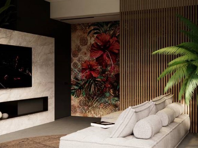 Accediamo all'immobile dove abbiamo ingresso, bagno di servizio, luminosa ed ampia zona giorno con cucina a vista con sbarco su GIARDINO ESCLUSIVO e BOX DOPPIO FUORI TERRA.
