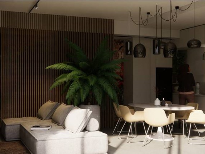 Accediamo all'immobile dove abbiamo ingresso, bagno di servizio, luminosa ed ampia zona giorno con cucina a vista con sbarco su GIARDINO ESCLUSIVO e BOX DOPPIO FUORI TERRA.