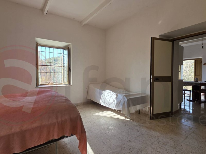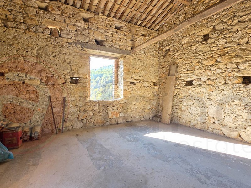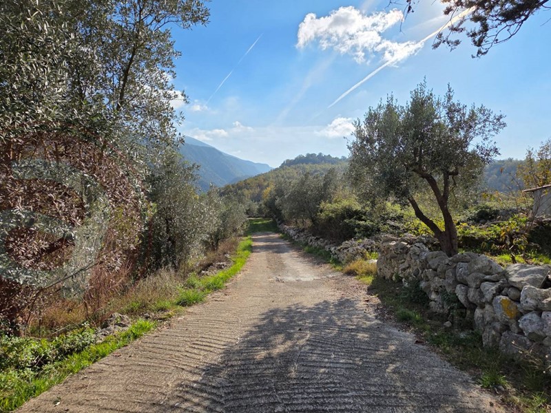 Il terreno è suddiviso in varie particelle, la maggior parte comunicanti fra loro, in cui sono presenti aree boschive, uliveti e giardini terrazzati. Le utenze al momento sono sospese, ma sono presenti e facilmente riattivabili ( luce ed acqua ). Il riscaldamento al momento è assente, c'è solamente il camino funzionante della cucina.