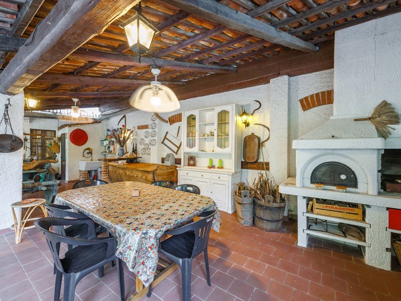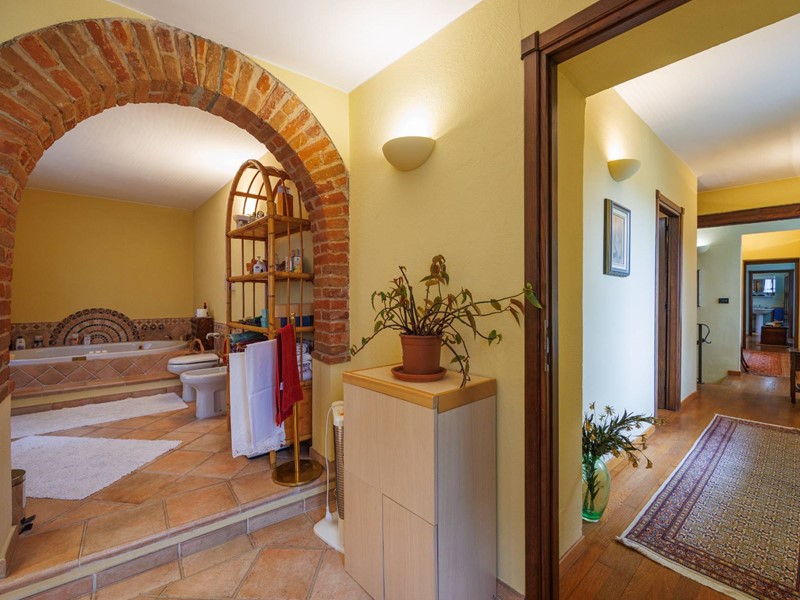 La casa si sviluppa su tre livelli. Al piano terra si trova una splendida tavernetta con soffitti a volta in mattoni a vista, un bagno e una cucina a servizio della zona esterna, ideale per pranzi e cene sotto il portico o a bordo piscina. Al piano superiore si apre un grande e luminoso soggiorno, una cucina, una sala da pranzo e un secondo salotto, oltre a due bagni. Lultimo piano è dedicato alla zona notte, con tre camere da letto, un ampio ripostiglio e un ulteriore bagno.