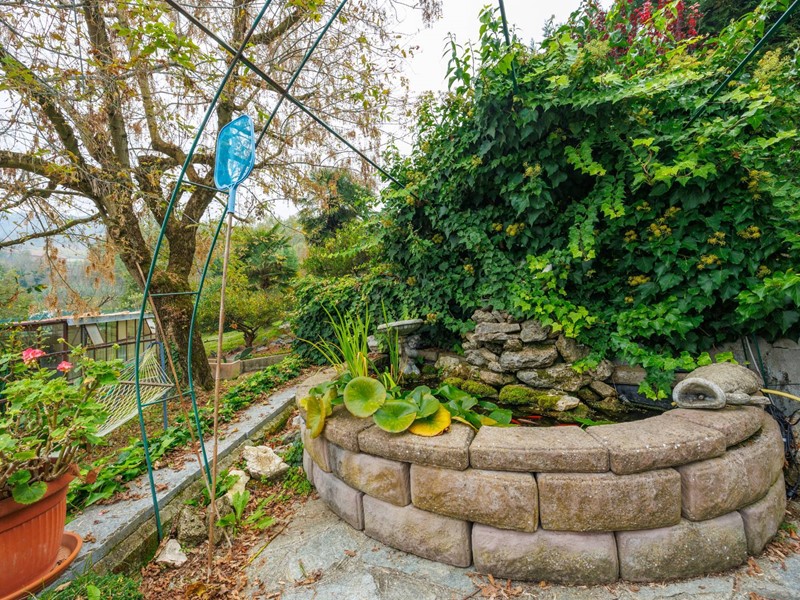 Allesterno, un curato giardino a terrazzamenti circonda la casa e ospita una piscina panoramica che regala unatmosfera di totale relax.