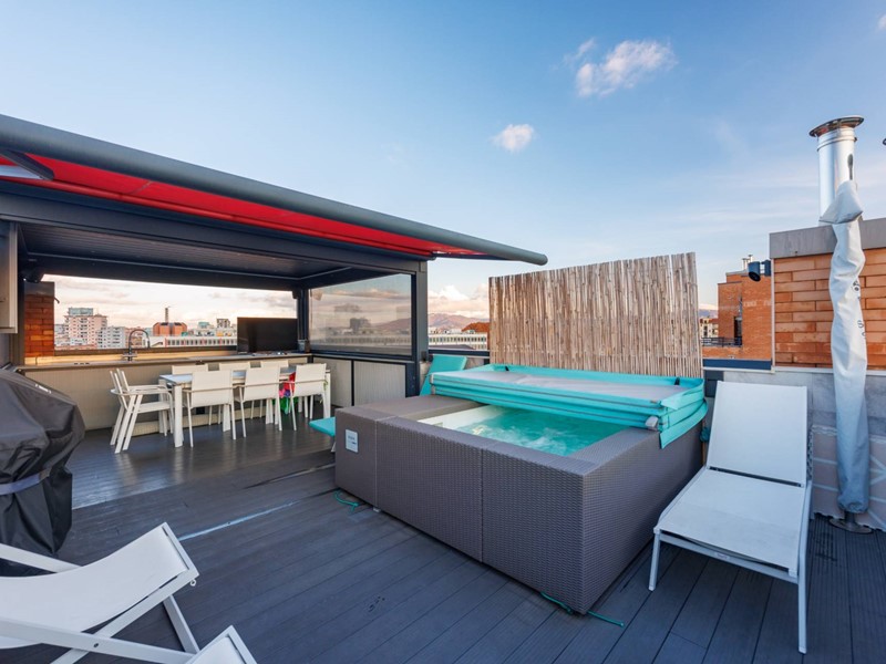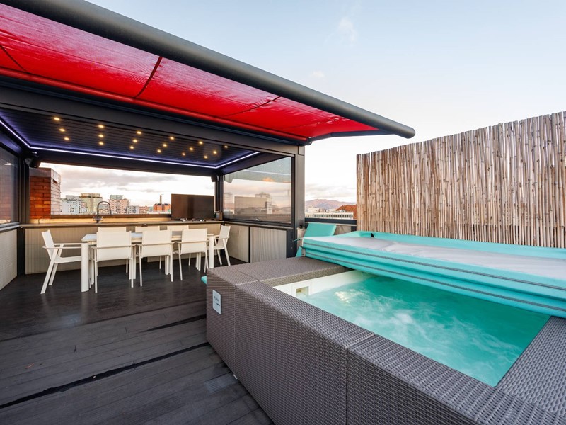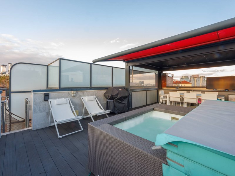 piano 8: dal piano settimo una scala a chiocciola conduce al terrazzo con una vista magnifica 360 gradi, è presente una zona spa/relax completa di piscina con idromassaggio e una zona pranzo, tutto attrezzato con altra pergola completa di nebulizzatore e luci.