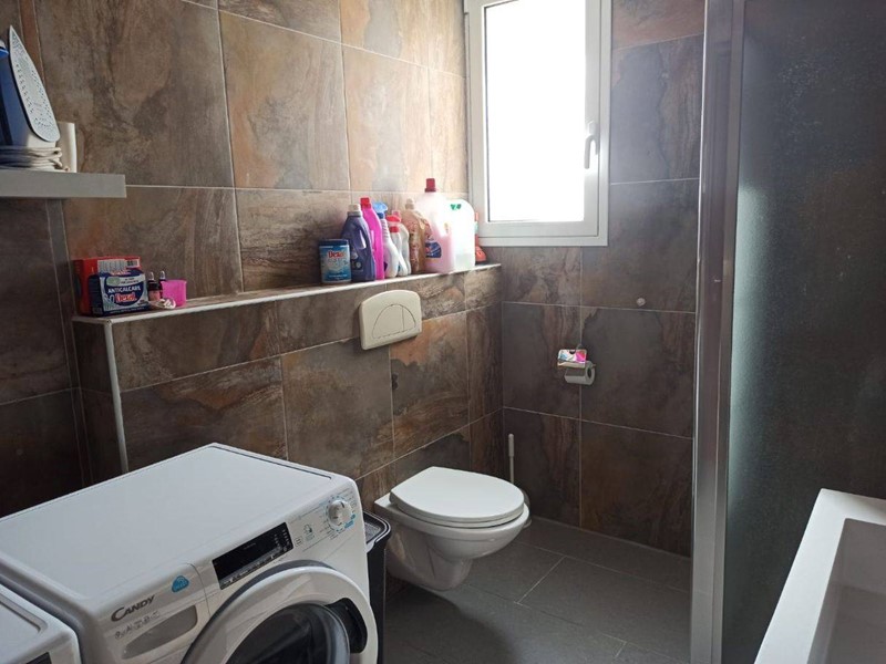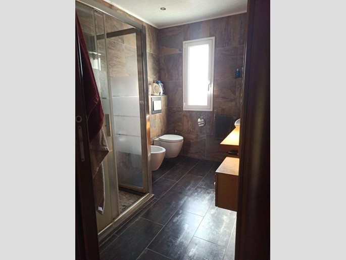 Una scala interna di granito sardo conduce nella zona sottostante con due camere ed un bagno con doccia completo di accessori.