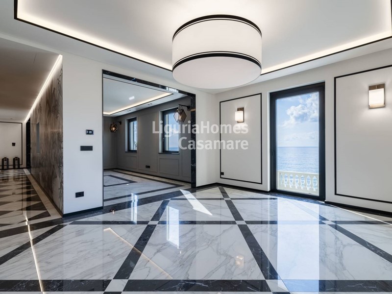 Gli interni della villa di lusso fronte mare in vendita ad Albisola sono altrettanto sontuosi. La proprietà dispone di sette camere da letto e otto bagni, tutti arredati con finiture di pregio e dotati di comfort all'avanguardia. Inoltre, la villa offre una palestra interna per il benessere quotidiano e una guest-house separata per garantire la massima privacy agli ospiti.