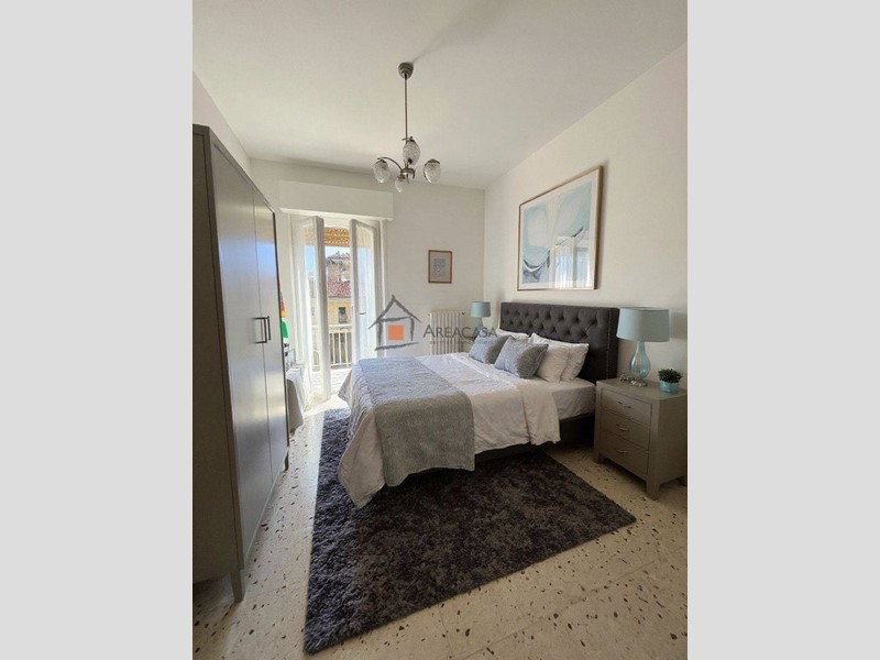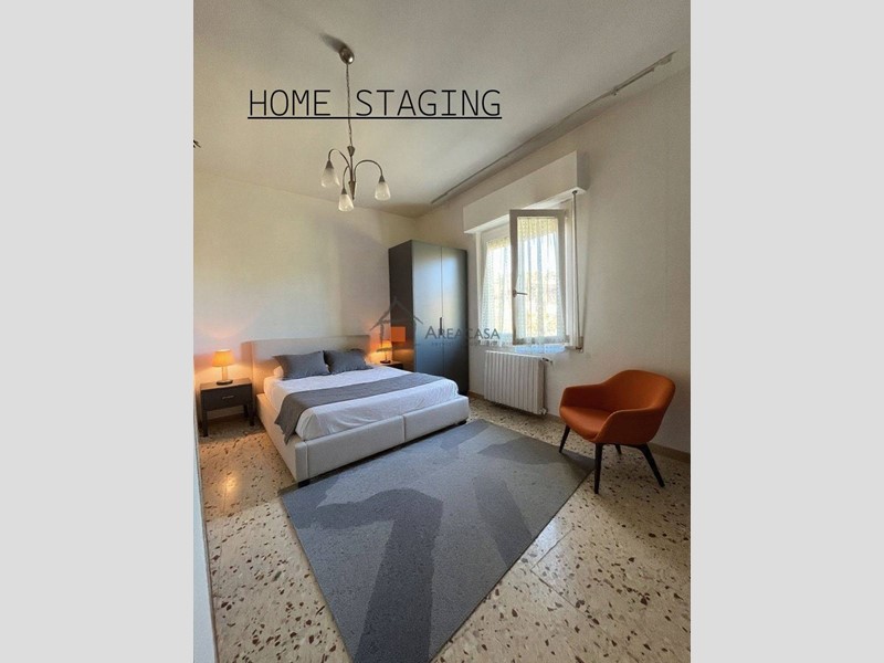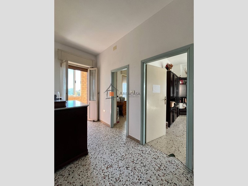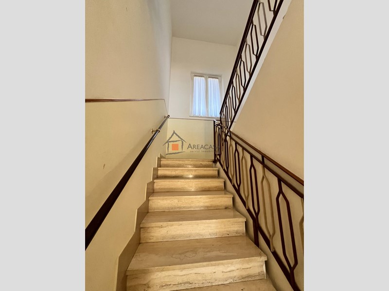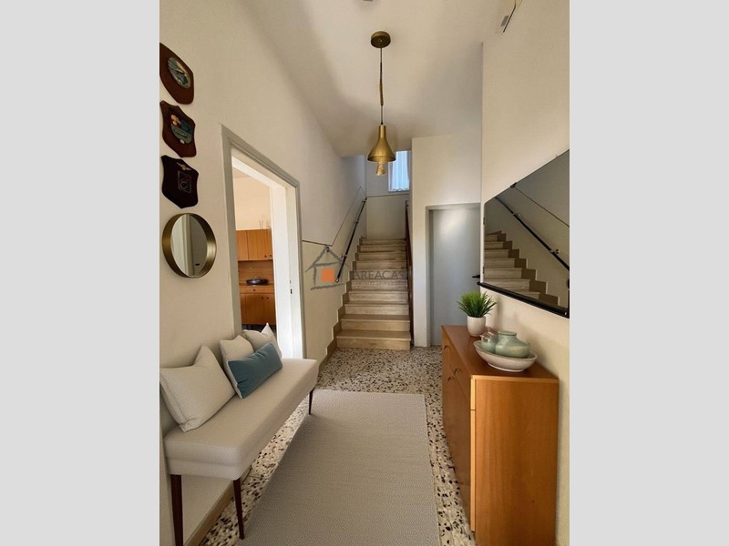 Salendo la sobria scala in travertino, si accede al piano superiore di circa 120 m², dove gli ambienti sono luminosi e ben distribuiti:
