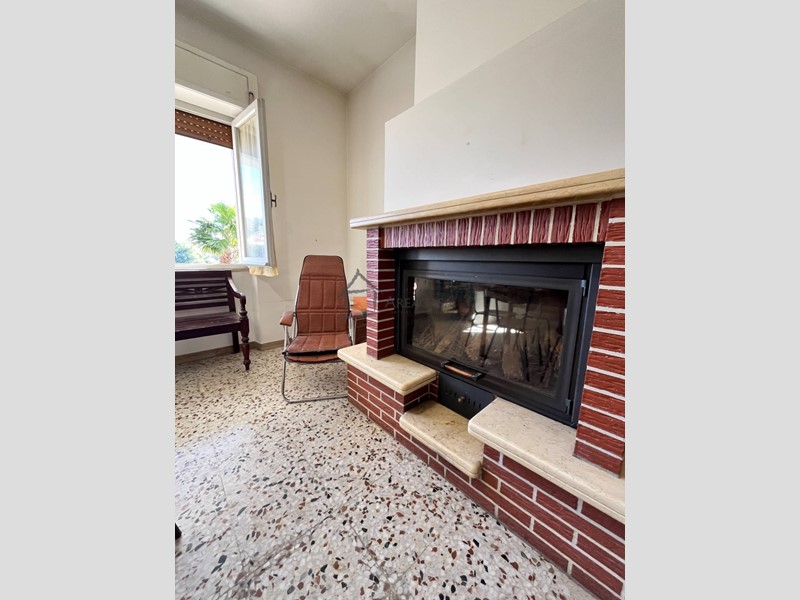 Soggiorno luminoso con termo-camino, perfetto per creare unatmosfera calda e accogliente.